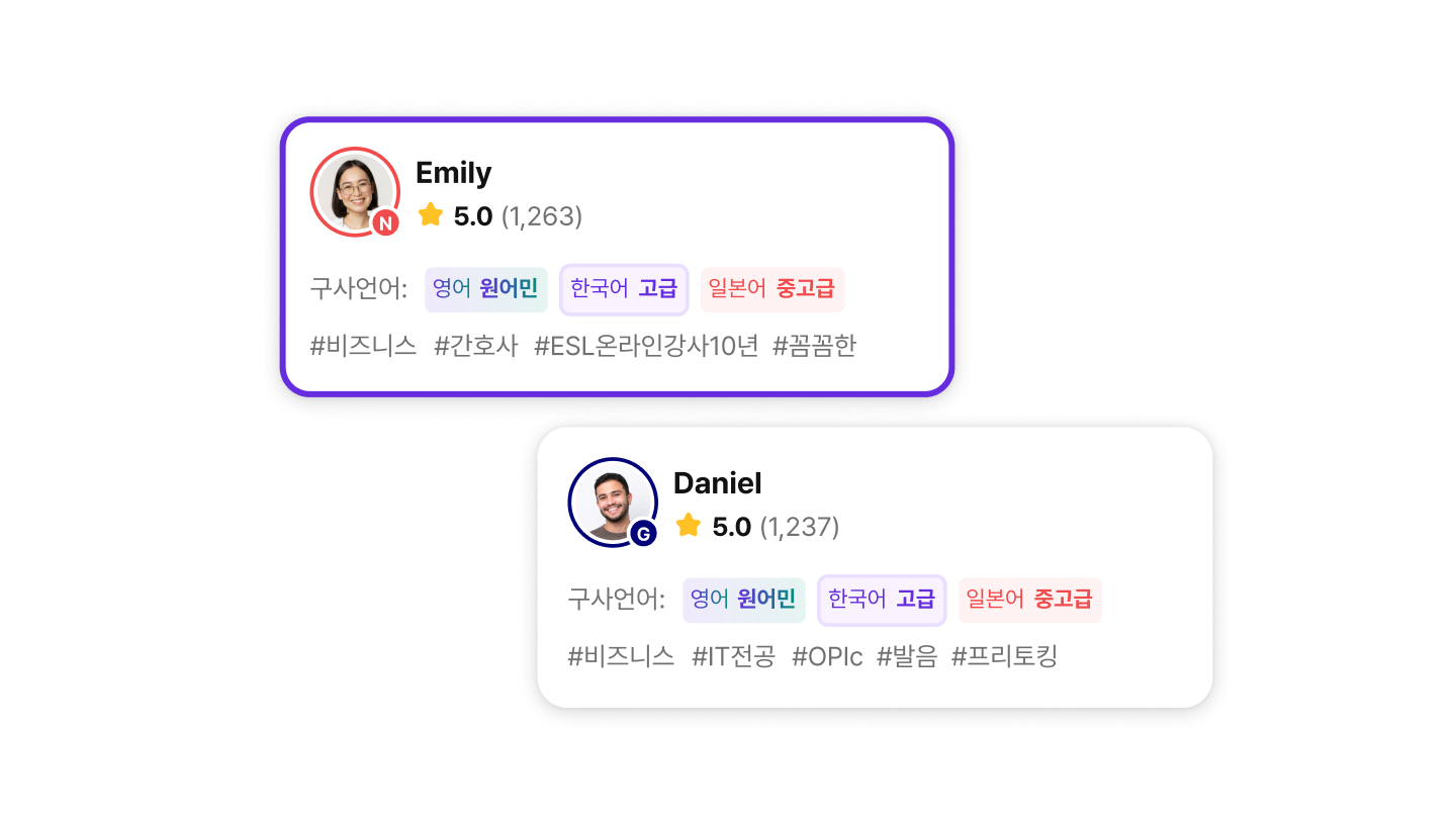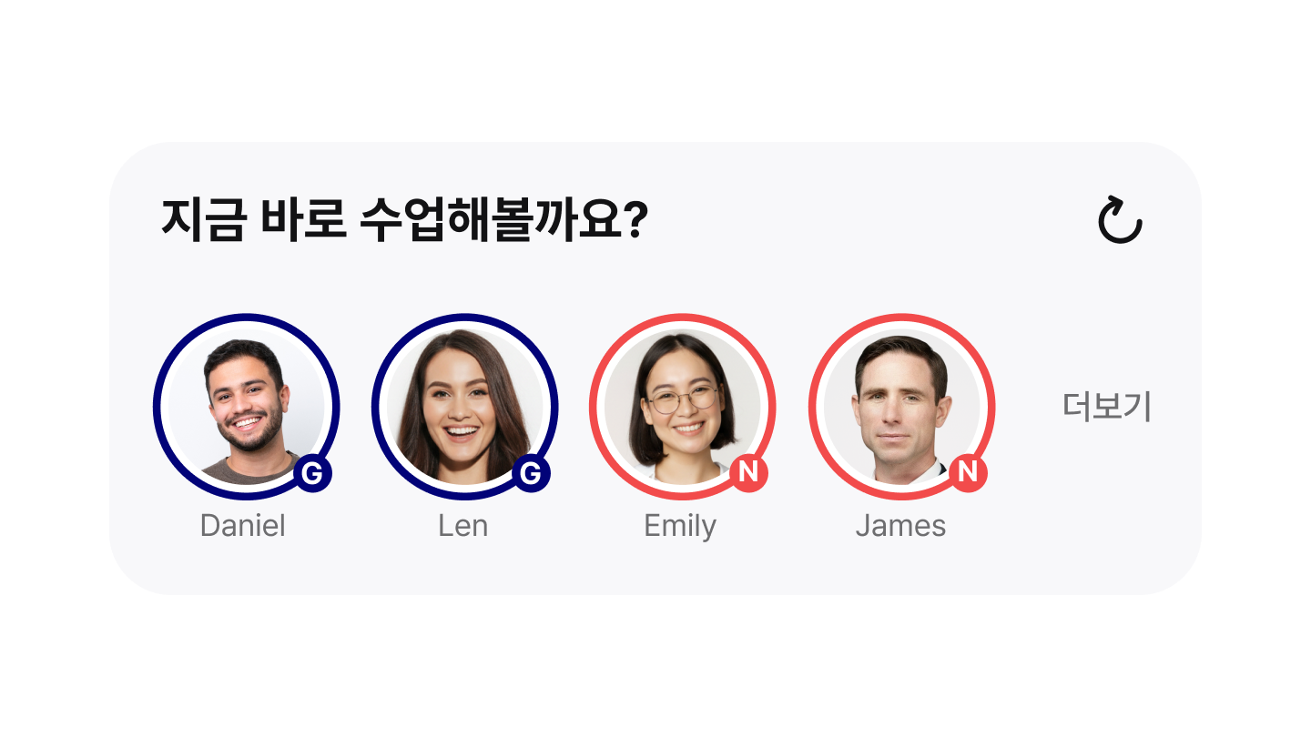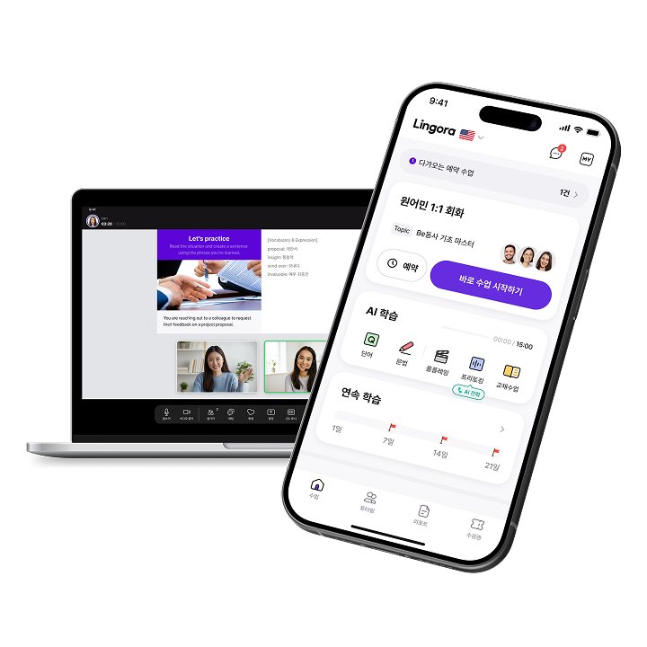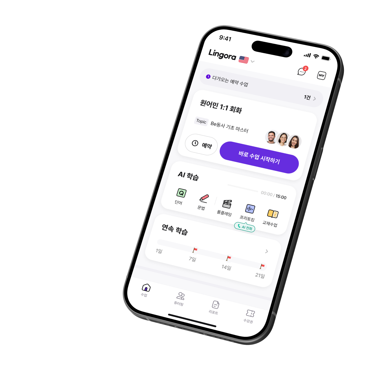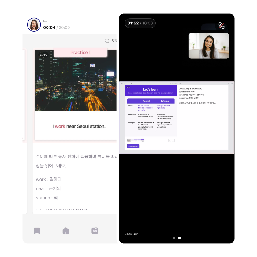 • 원어민 1:1 회화 · 출강 · AI를 하나의 플랫폼에서