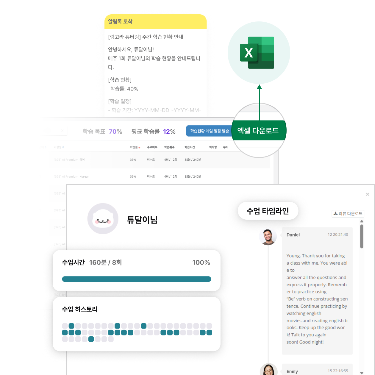 담당자는 실시간 대시보드만 확인하시면 됩니다. 전담 매니저가 학습 참여를 지속적으로 관리하고 독려합니다.