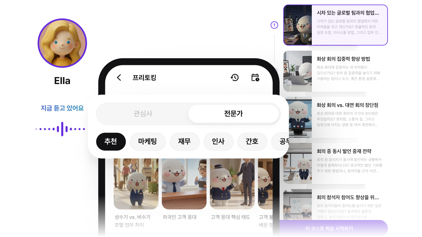 협상, 미팅, 발표 등 직무 기반 대화 연습